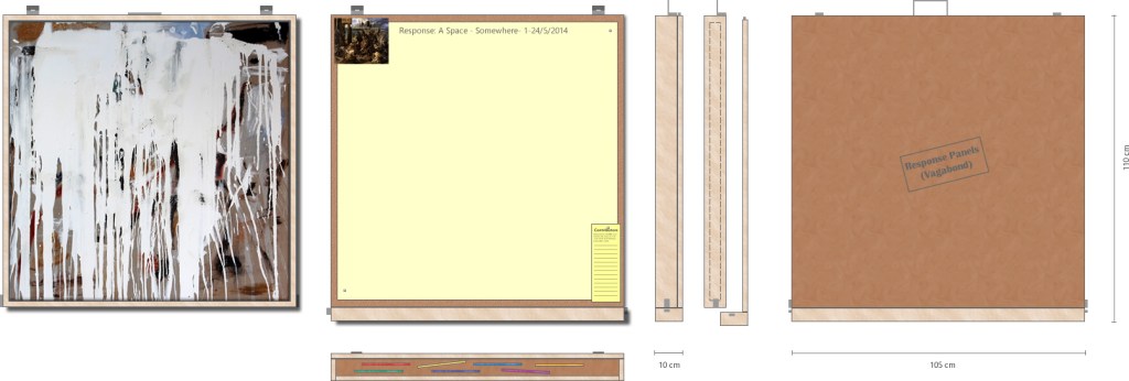 Putting a painting in a box to travel, functioning both as frame and drawing board for an audience. Sharing and repeating my own process: responding to / copying a selected painting. Drawing sheets for different venues / time spans. Form to note contributor’s names. The set-up is flexible and mobile, response conditions may be adjusted and varied, maintaining the rule that there always need to be at least two, who respond together.
