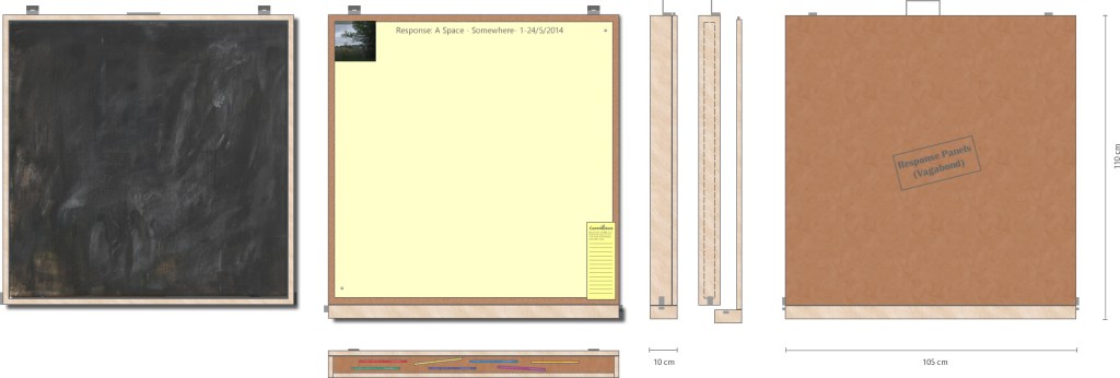 Set up in a public space the drawing panes become a public location, the shared responsibility of all, like other public spaces, with responses reaching from tender or timid contributions (if any) to vandalism over night (when no one is watching).